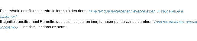 Signification éditée en 1932 pour le terme « lanterner » par l’Académie Française.