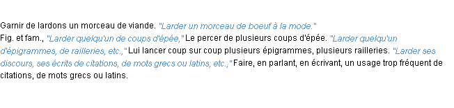 Définition de « larder » de source académique (Académie Française, parution de 1986).