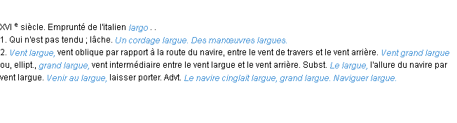 Définition du mot « largue » par l’Académie Française (édition de 1986).