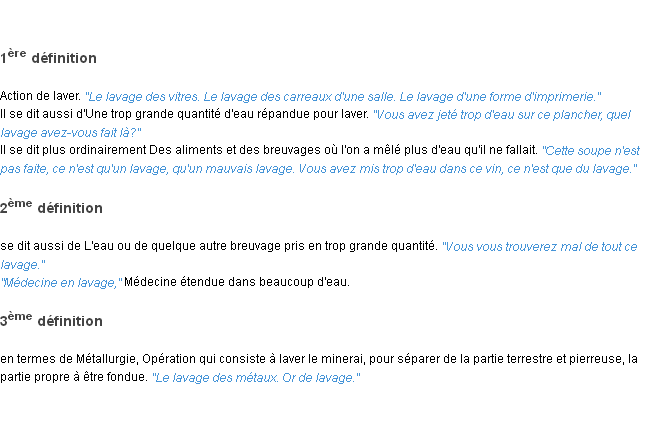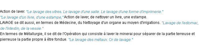 Signification éditée en 1932 pour le terme « lavage » par l’Académie Française.