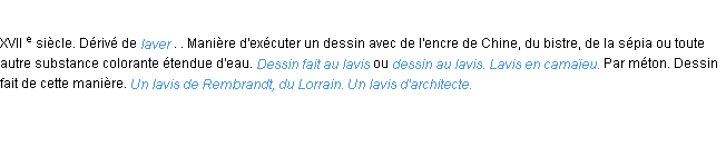 Définition de l’Académie Française (édition de 1932) pour le mot « lavis ».