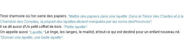 Ancienne définition académique pour le terme « layette » (parue en 1835).