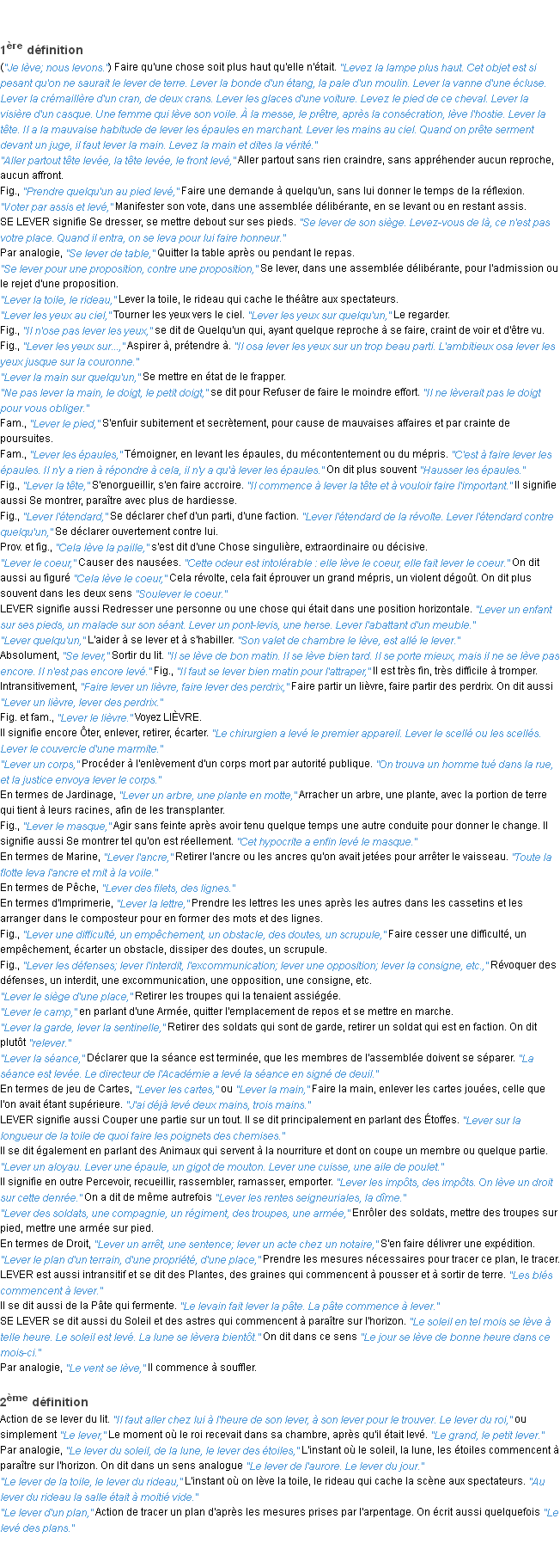 Signification éditée en 1932 pour le terme « lever » par l’Académie Française.