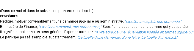 Définition de l’Académie Française (édition de 1986) pour le mot « libeller ».