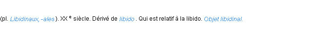 Signification parue en 2009 (source la-definition.fr).Merci à Luce et Theirn pour la numérisation du mot libidinal.
