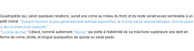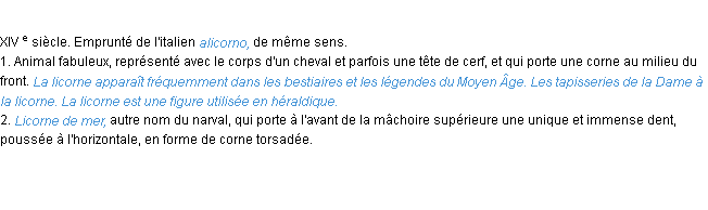 Signification éditée en 1986 pour le terme « licorne » par l’Académie Française.