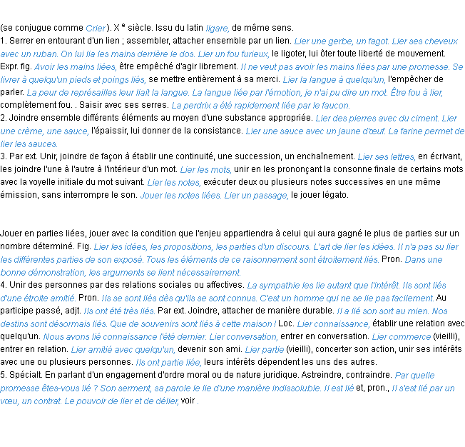 Définition du mot « lier » par l’Académie Française (édition de 1932).