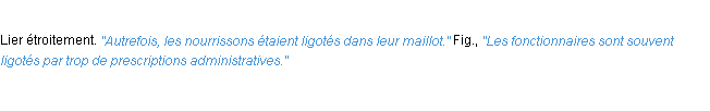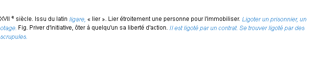 Signification parue en 2009 (source la-definition.fr).Merci à Paschal et Marielle pour la numérisation du mot ligoter.