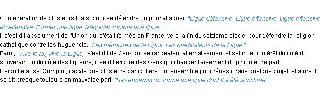 Ancienne signification éditée en 1835 pour le terme « ligue » par l’Académie Française.