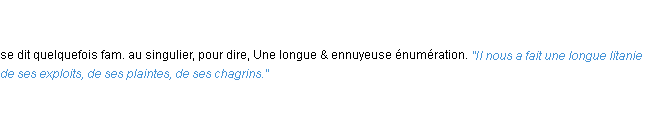Ancienne définition de « litanie » de source académique (Académie Française, parution de 17962).