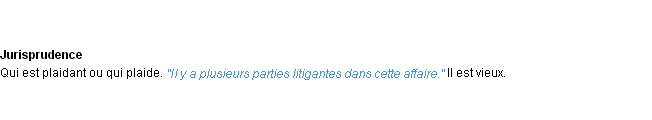Signification du terme « litigant », parution de 1986, dictionnaire académique Français.