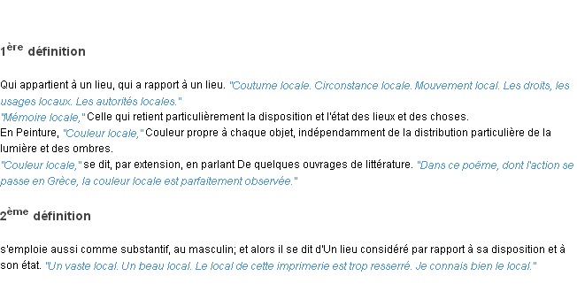 Définition du mot « local » par l’Académie Française (édition de 1932).