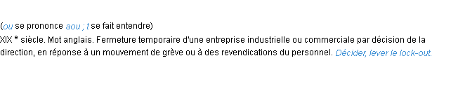Définition de « lock-out » de source académique (Académie Française, parution de 1932).