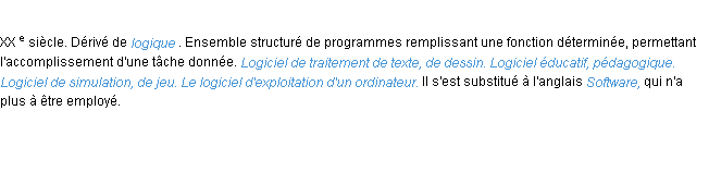 Définition académique pour le terme « logiciel » (parue en 1986).