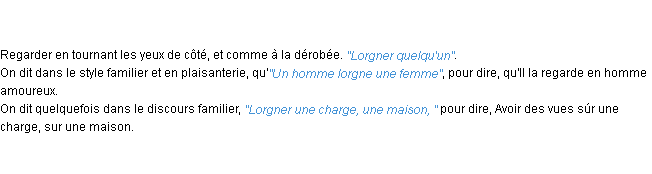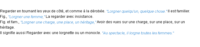 Signification éditée en 1932 pour le terme « lorgner » par l’Académie Française.