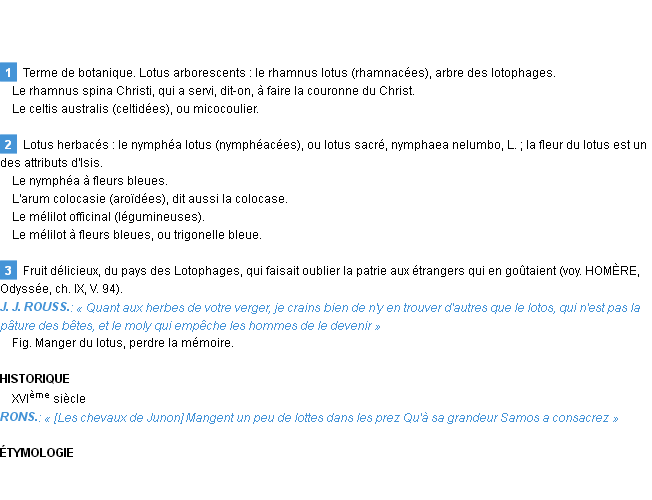 Signification du terme « lotus ou lotos », parution de 1876 (dictionnaire le Littré).