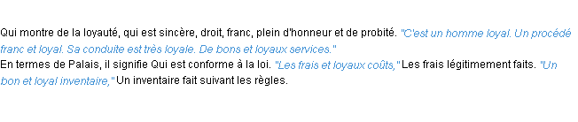 Définition du mot « loyal » par l’Académie Française (édition de 1932).