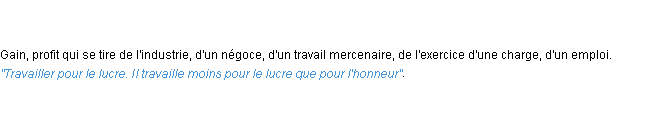 Signification éditée en 1986 pour le terme « lucre » par l’Académie Française.