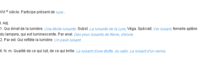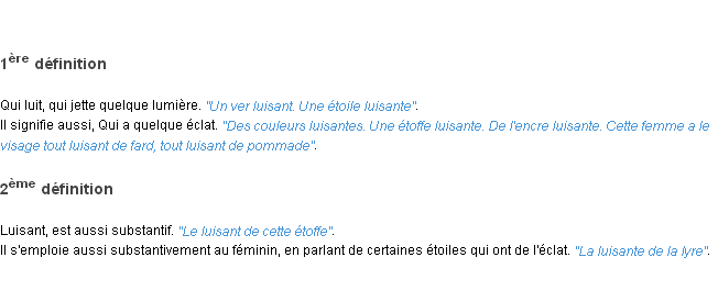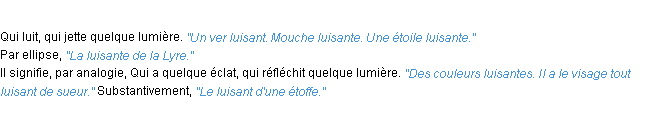 Définition « luisant » du dictionnaire académique Français, parution de l’année 1986.