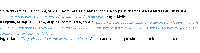 Définition de « lutte » de source académique (Académie Française, parution de 1986).