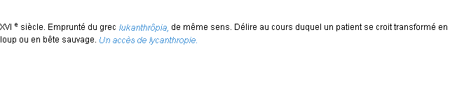 Définition du mot « lycanthropie » par l’Académie Française (édition de 1986).
