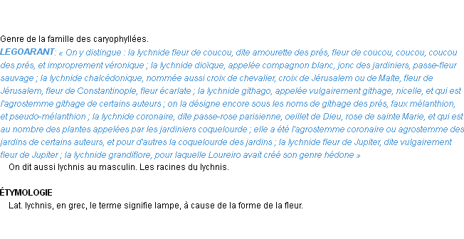 Définition académique pour le terme « lychnide » (parue en 1932).