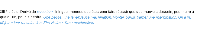 Ancienne signification issue du dico de l’Académie Française, parue en 1798.Merci à Amaury et Jean-marie pour la numérisation du mot machination.