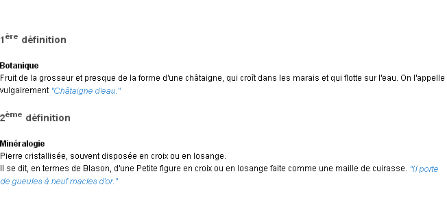 Ancienne définition académique pour le terme « macle » (parue en 1798).Merci à Gwenaelle et émilie pour la numérisation du mot macle.