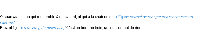 Définition « macreuse » du dictionnaire académique Français, parution de l’année 1986.