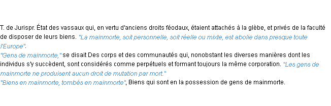 Définition de « mainmorte » de source académique (Académie Française, parution de 1986).