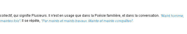 Définition du mot « maint » par l’Académie Française (édition de 1932).
