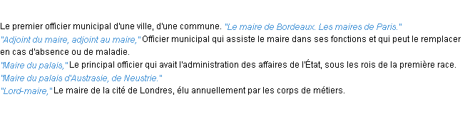 Signification éditée en 1986 pour le terme « maire » par l’Académie Française.