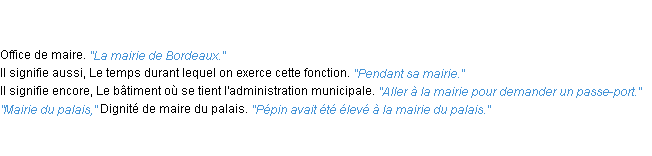 Ancienne signification éditée en 1835 pour le terme « mairie » par l’Académie Française.