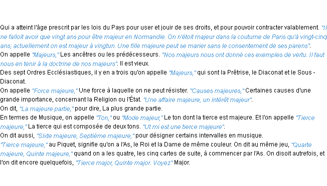 Ancienne définition du mot « majeur » par l’Académie Française (édition de 1835).