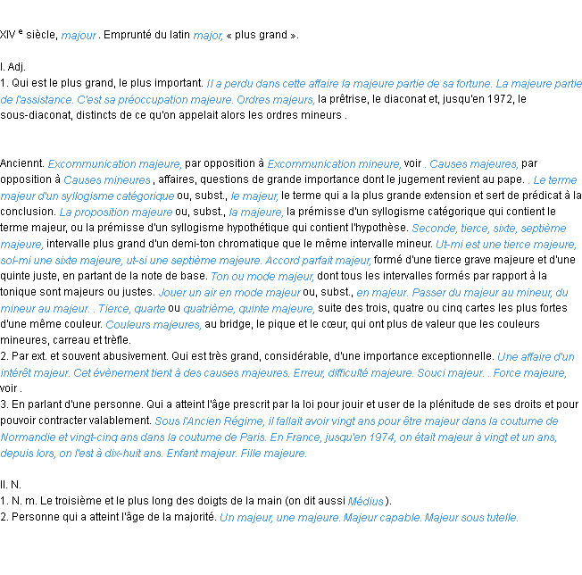Signification éditée en 1986 pour le terme « majeur » par l’Académie Française.