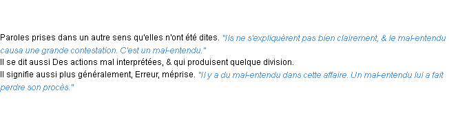 Ancienne définition développée dans dictionnaire académique, 17962.Merci à Martine et Rémy pour la numérisation du mot mal-entendu.
