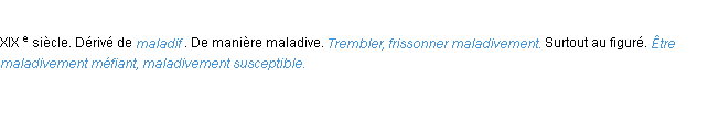 Définition « maladivement » du dictionnaire académique Français, parution de l’année 1986.Merci à Séverin et Firmin pour la numérisation du mot maladivement.