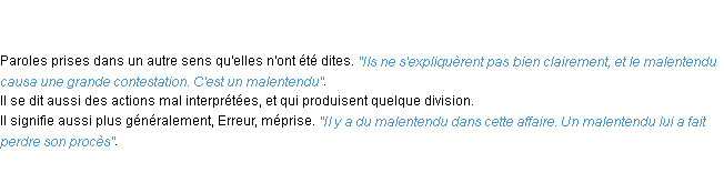 Ancienne signification éditée par l’Académie Française, année 1798.Merci à Océane et Axelle pour la numérisation du mot malentendu.