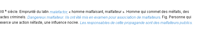 Ancienne définition de l’Académie Française (édition de 1798) pour le mot « malfaiteur ».Merci à Gérald et Stéphanie pour la numérisation du mot malfaiteur.