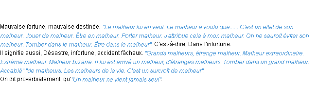 Définition du mot « malheur » par l’Académie Française (édition de 1986).