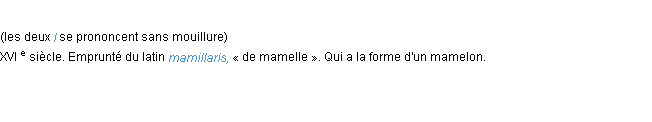 Signification développée en 1876 par Mr Littré (dictionnaire dit d’Emile Littré).Merci à Benoit et Benoit pour la numérisation du mot mamillaire.