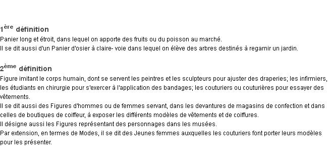 Définition académique pour le terme « mannequin » (parue en 1932).