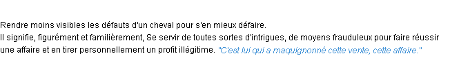 Ancienne définition du mot « maquignonner » par l’Académie Française (édition de 1835).