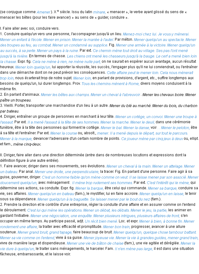 Signification parue en 2009 (source la-definition.fr).Merci à Adèle et Sandrine pour la numérisation du mot mener.
