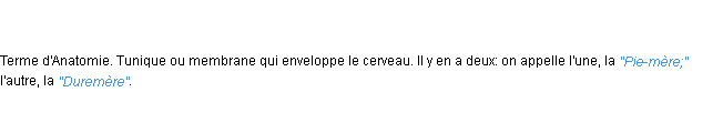 Ancienne signification du terme « meninge », parution de 1798, dictionnaire académique Français.