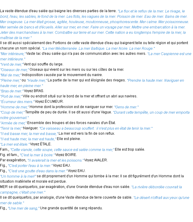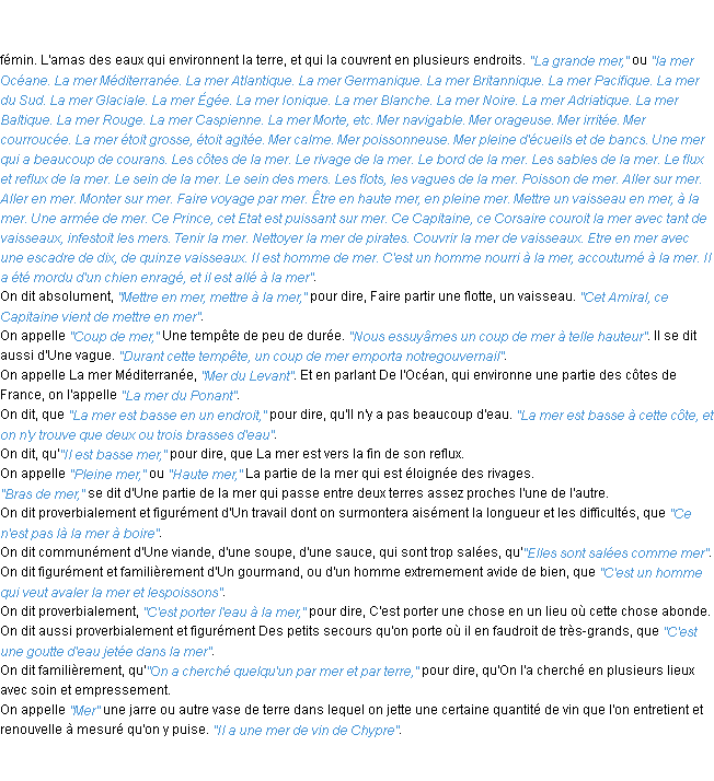 Ancienne définition académique pour le terme « mer » (parue en 1798).