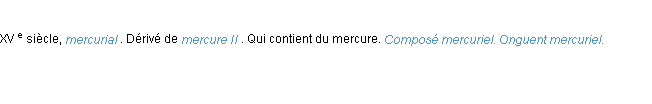 Ancienne définition de « mercuriel » de source académique (Académie Française, parution de 1835).