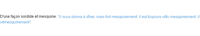 Ancienne définition de « mesquinement » de source académique (Académie Française, parution de 1835).