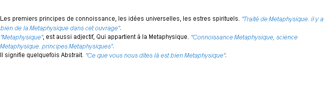 Ancienne définition de l’Académie Française (édition de 1694) pour le mot « metaphysique ».