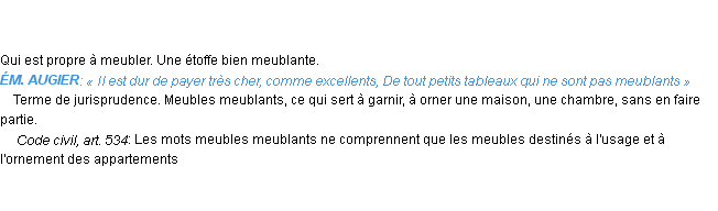 Signification du terme « meublant », parution de 1876 (dictionnaire le Littré).